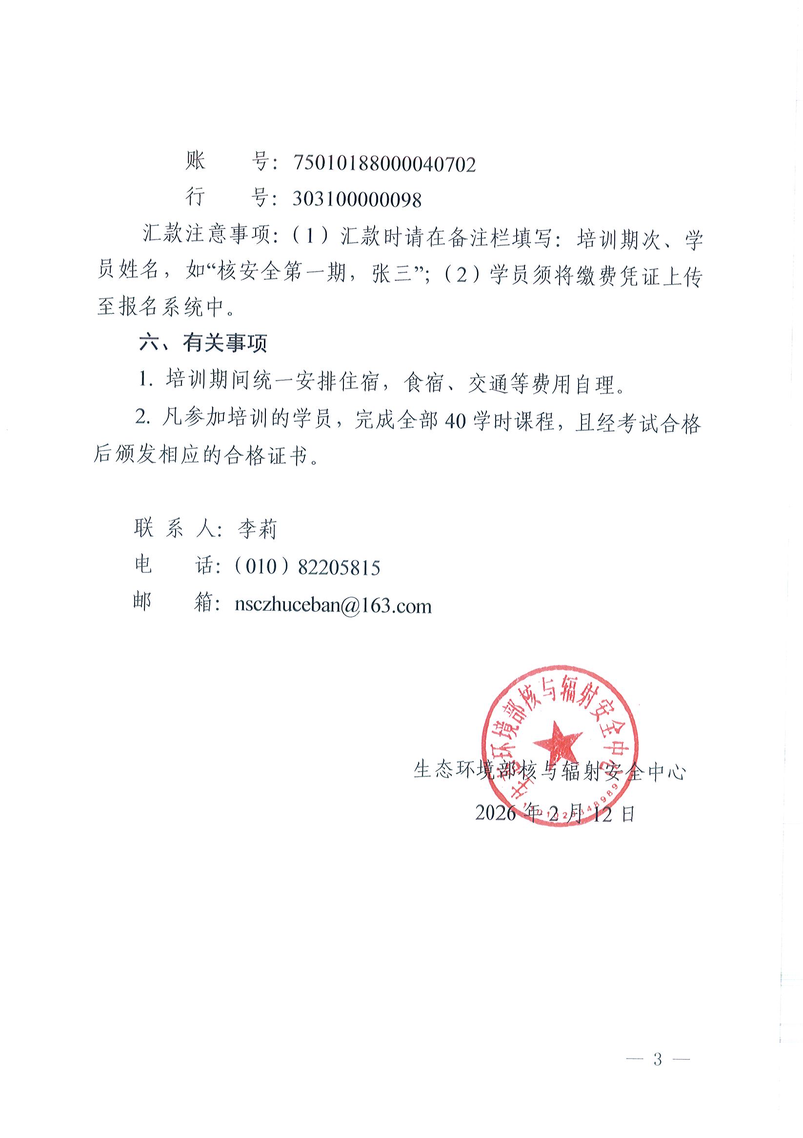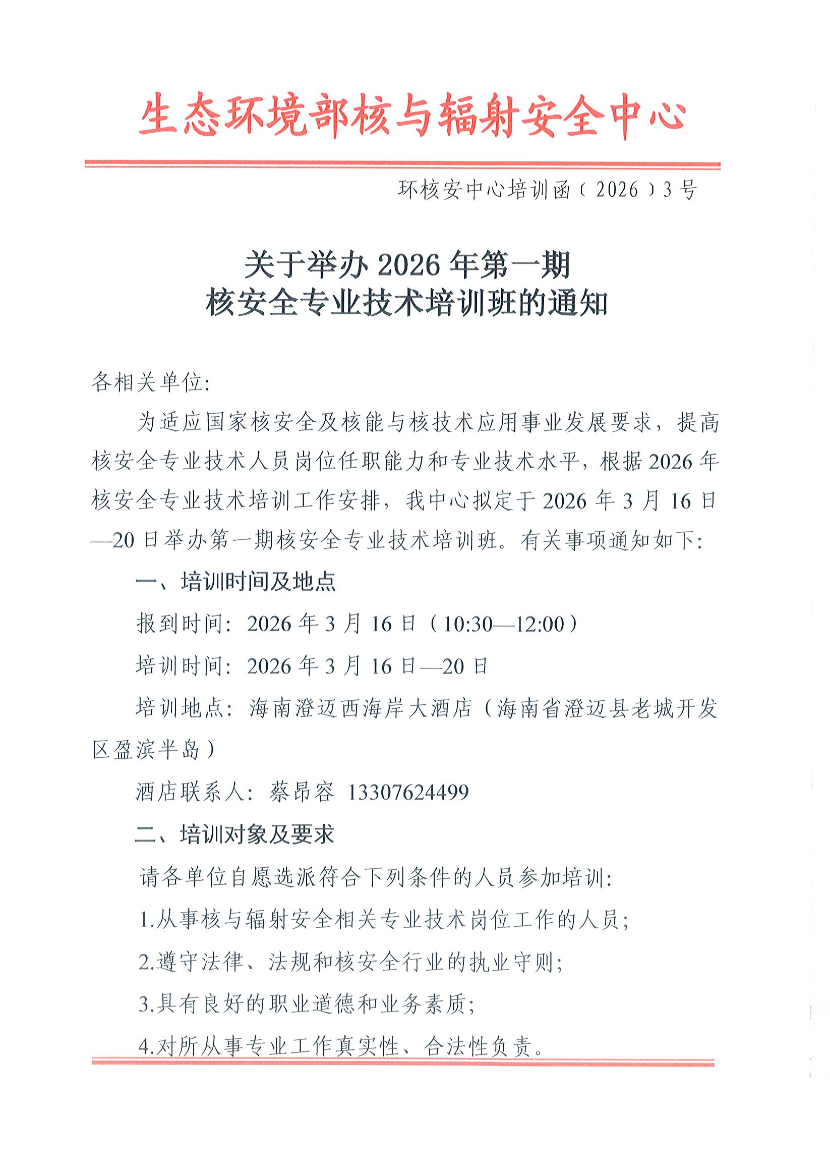 关于举办2026年第一期核安全专业技术培训班的通知