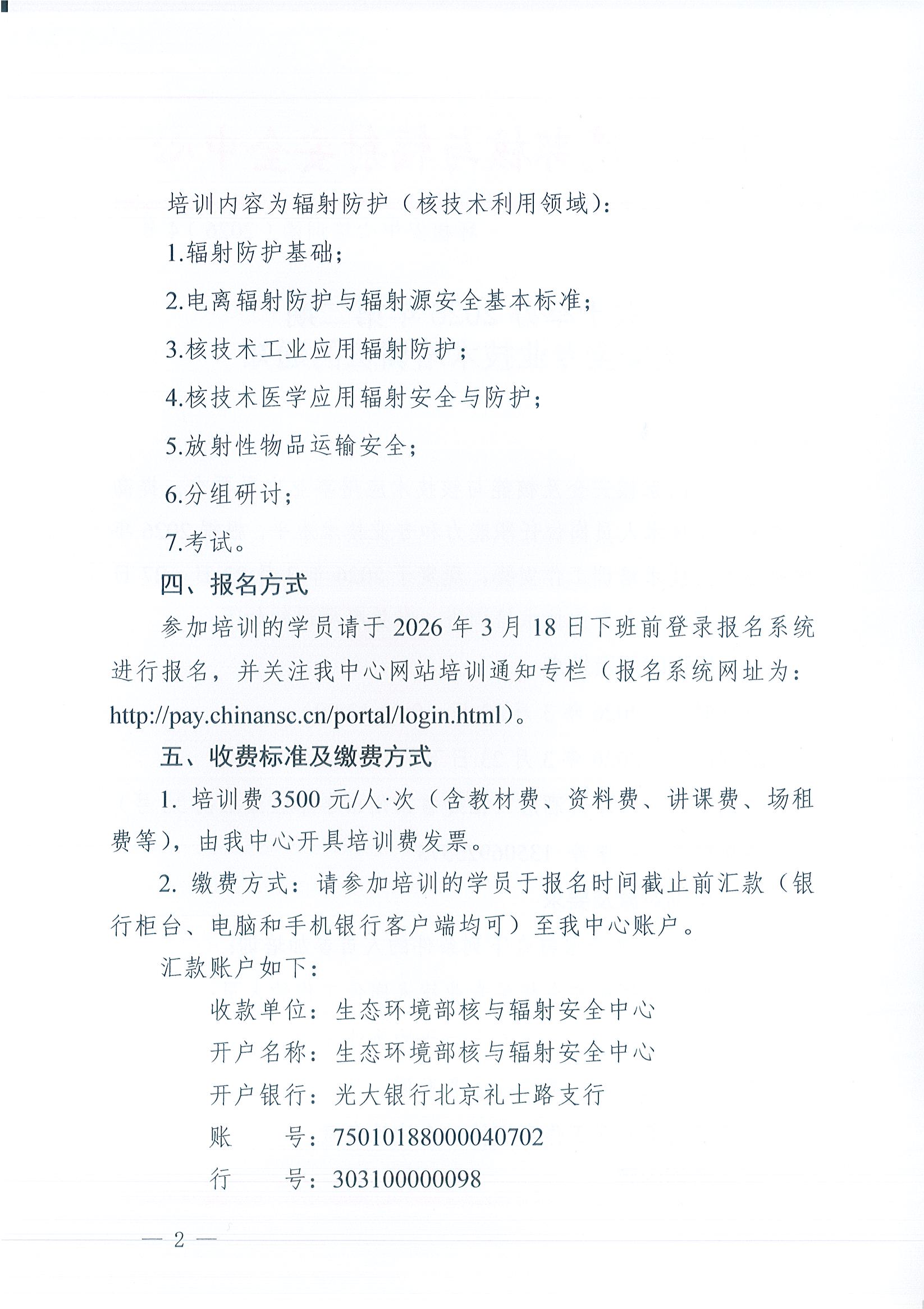 关于举办2026年第二期核安全专业技术培训班的通知