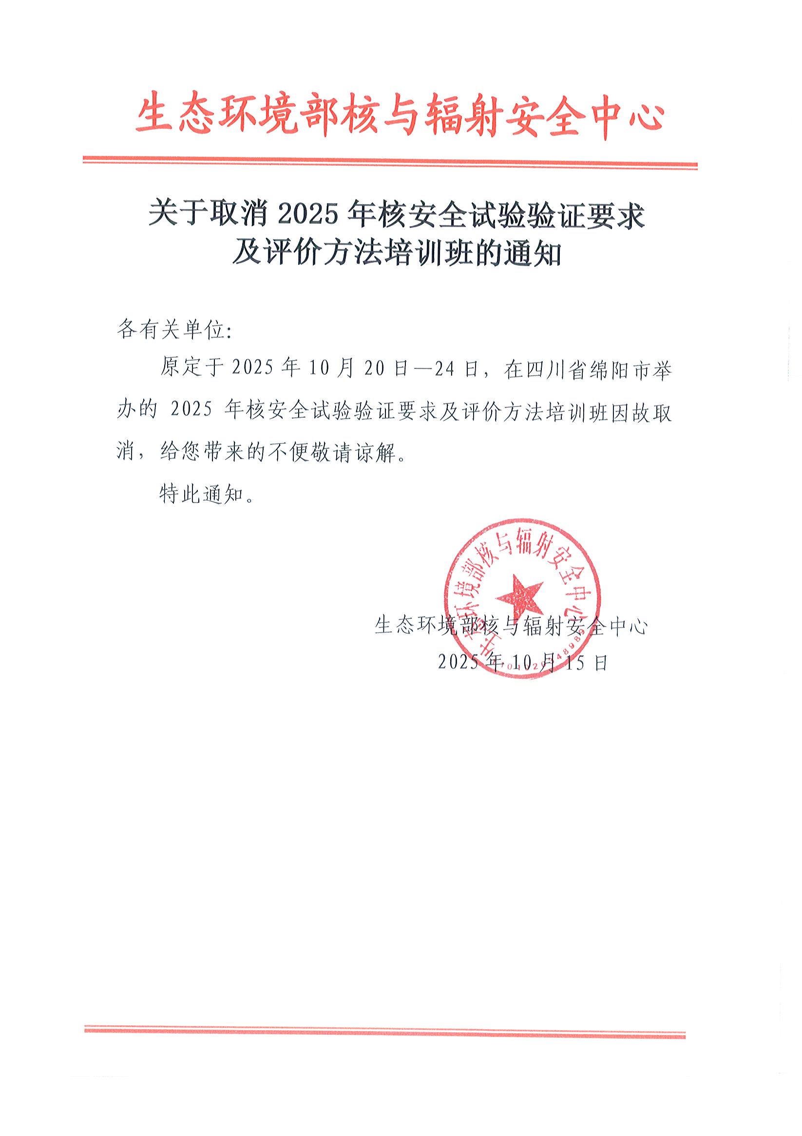 关于取消2025年核安全试验验证要求及评价方法培训班的通知