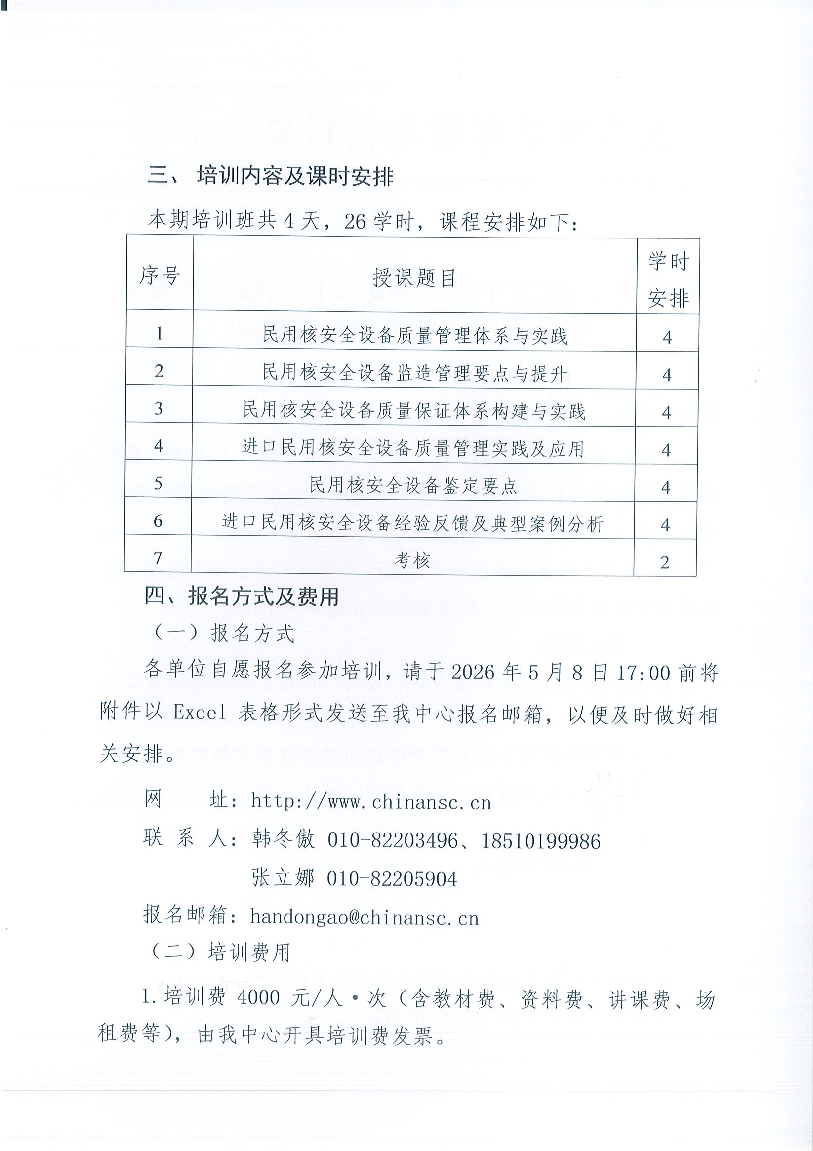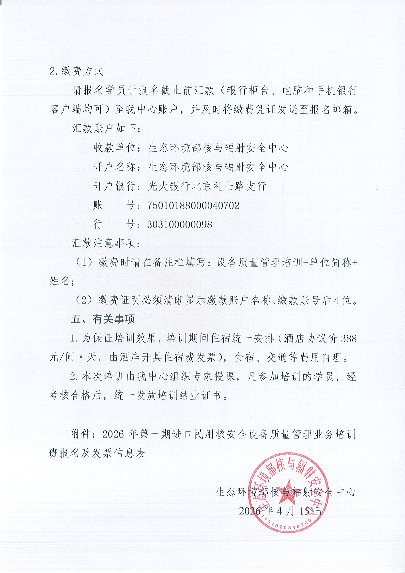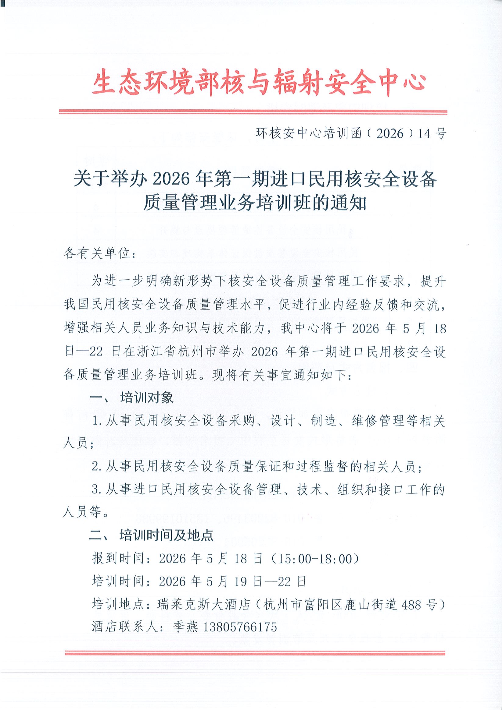 关于举办2026年第一期进口民用核安全设备质量管理业务培训班的通知